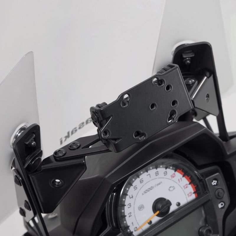 Pour un positionnement optimal, une tôle d’acier époxy garantit une fixation stable du GPS aux points de fixation d’origine dans le cockpit. Positionnement astucieux, amortissement des vibrations et retrait facile : voici les avantages des supports GPS spécifiques à chaque machine. La base pivotante s’enlève d’un geste et grâce à la disposition universelle des trous, elle permet de maintenir fermement de nombreux systèmes GPS actuels comme les housses Navi Case Pro et les étuis rigides pour smartphone de SW-MOTECH. Un amortisseur intégré protège l’équipement des vibrations.Installation facile sur les points de fixation existants dans le cockpitSupport GPS en acier époxy noir avec le mécanisme QUICK-LOCK en plastique renforcé de fibres de verrePositionnement optimal grâce à la conception spécifique à chaque motoAmovible, pivotant et anti-vibrationsLe support à perforations universelles maintient en toute sécurité les modèles Navi classiques et les housses Navi Case Pro ou les étuis rigides de SW-MOTECHInclus:1 x Support GPSNotice d’installationMatériel de montageCaractéristiques:Matériaux : Acier Surface : époxyCouleur : noirPoids : 0,8 kg