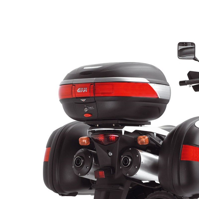 Le support top case Monolock Givi comprend:Le supportLa visserieNotice de montagePrendre la platine à l’intérieur du top case Givi Monolock.