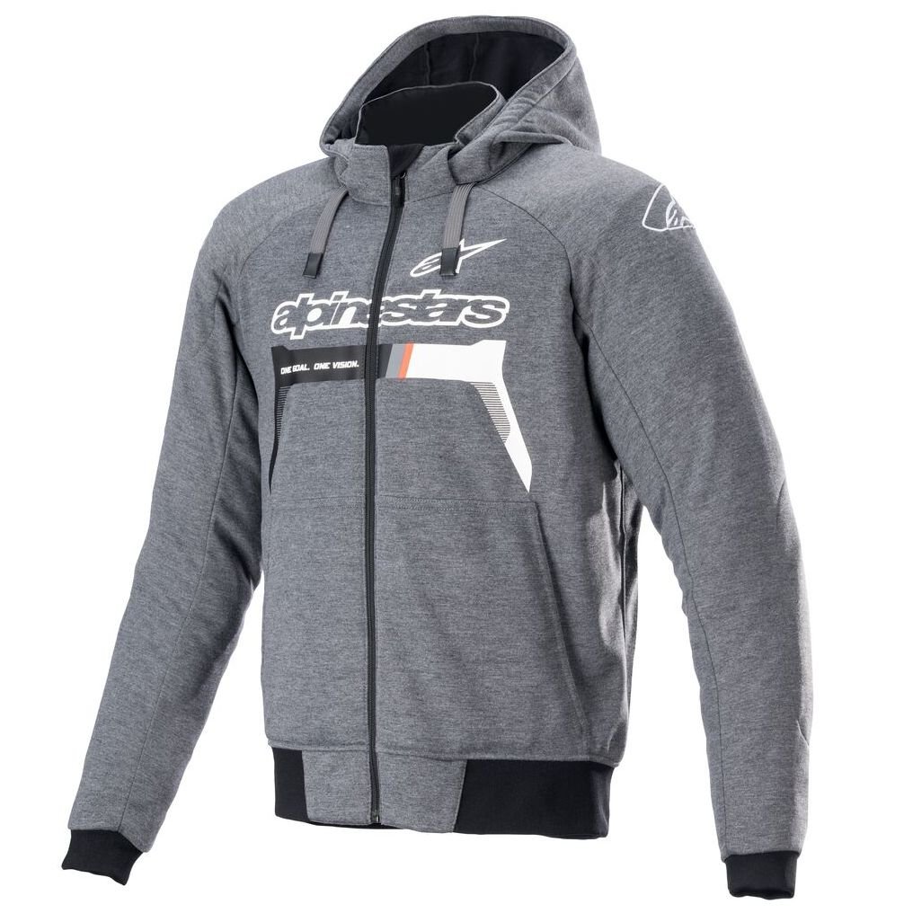 Sweat moto Alpinestars CHROME IGNITION: Présentation: ALPINESTARS vous propose son sweat à capuche 2 roues au look tendance pour homme le CHROME IGNITION : Matière: En polaire technique au toucher cotonDoublure: Doublure avec renforts en fibres d’aramides au niveau des épaules, des coudes et du dos reconnu pour sa haute résistanceProtections: Protections épaules Nucleon Flex Plus homologuées CE niveau 1 Protections coudes Nucleon Flex Plus homologuées CE niveau 1 Prédisposé à recevoir une protection dorsale Alpinestars Nucleon homologuée CELes « + »: Col haut Capuche amovible Taille et poignets en bord-côte pour un ajustement personnalisé Prédisposé à recevoir le système airbag Tech Air 5Poches: 2 poches extérieures zippées 1 poche intérieure étanche
