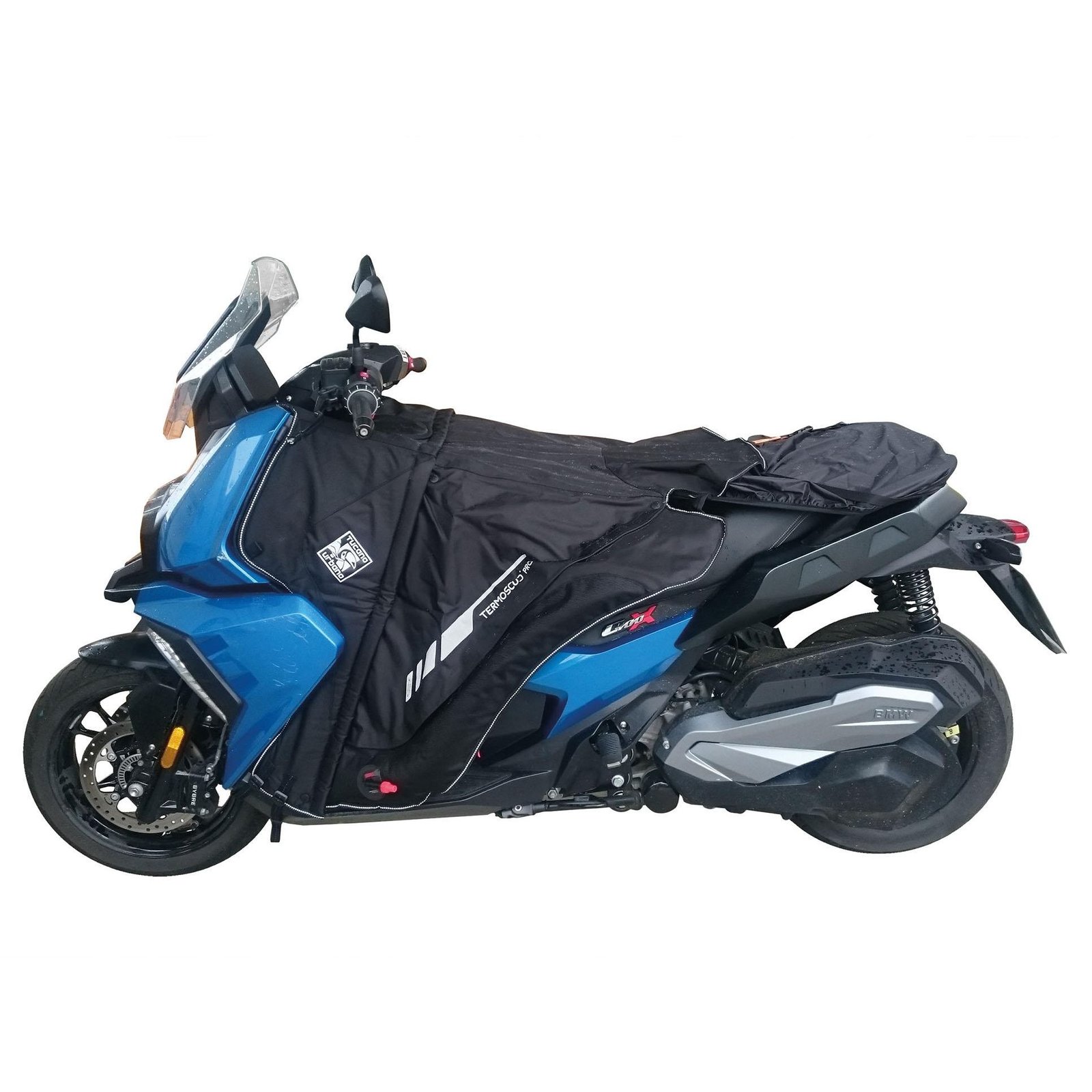 Le tablier Thermoscud PRO pour scooter: évolution du tablier scooter Termoscud, équipé du système « 4 season system » pour allonger la période d’utilisation du tablier tout au long de l’année.Grâce au 4 season system, le tablier Termoscud Pro présente les avantages suivants:Pendant la période hivernale, il garantit une protection thermique maximale et empêche tout flottement à grande vitesse grâce au système gonflable anti-flottement breveté S.G.A.S équipé d’une nouvelle valvePendant l’été, pas besoin de l’ôter du scooter, il suffit de détacher la partie hivernale et de ne  garder que le spoiler rigide intégré à la carrosserie, d?où l’on peut extraire une protection anti-pluie d’urgence et d’un couvre selle pratiqueLe tablier est homologué CE et aux normes EPI (Équipement de protection individuelle) de 1er catégorie selon la norme CE EN 343.2008.Caractéristiques:Construction Hydroscud garantissant l’imperméabilitéExtérieur en 1680 ballistic et polyamide dobby résistant et imperméableCoutures soudéesCouverture hivernale lourde et détachable en étéSystème S.G.A.S: système gonflable anti flottement breveté, avec une nouvelle valve , équipée de bouchon intégré et d’une fermeture à vis étanche (adaptateur S.G.A.S fourni pour gonfler avec la bouche / une pompe qui rend le gonflage hygiénique et évite la sortie d’air pendant la fermeture de la valveAnneau antivol (en fonction du modèle  du scooter)Grande poche porte objetsCouvre selle rangé dans la poche du plastron, disponible aussi dans la version estivaleProtection anti–pluie d’urgence extractible à utiliser en étéProfils et motifs réfléchissantsSmart holder system: prédisposé pour poche imperméable pour porte Smartphone (en option)Montage sans assistance obligatoire d’un mécanicienLavage conseillé: utiliser un linge humide, rincer abondamment les bandes et effectuer un séchage complet rangement dans un leur sec.Le tablier thermoscud Pro est spécifique à chaque modèle de scooter.