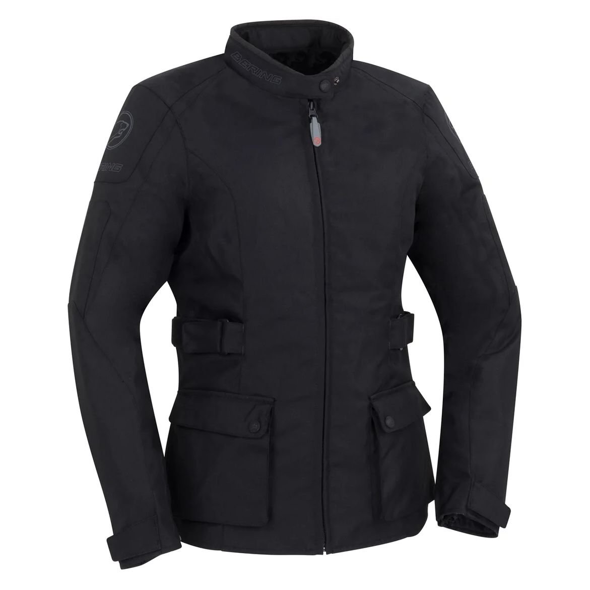 Veste Bering LADY APRIL: Présentation: BERING vous propose sa veste moto femme le LADY APRIL : Matière: En fibres Tech 600D dont le tissage offre une haute résistance à l’abrasion et aux déchirementsDoublure: Doublure fixe filet contrecollée à la membrane Membrane BWTECH Classic étanche et respirante Doublure thermique ouatinée 120g SHELLTECH Classic amovibleProtections: Protections épaules Protect Flex OMEGA homologuées CE Protections coudes Protect Flex OMEGA homologuées CE Protections coudes réglables et ajustables Prédisposé à recevoir une protection dorsale OMEGA homologuée CE niveau 2 OU de niveau 1 Les « + »: Col court avec fermeture par bouton pression Boucles de serrage Velcro à la taille Patte d’ajustement Velcro aux poignets Poignets zippés afin de faciliter l’enfilage et la mise en place de la manchette des gants Zips latéraux d’aisance pour plus de confort et de mobilité sur la moto Éléments réfléchissants 3M Scotchlite pour une visibilité accrue Body Fit : coupe ajustée près du corpsPoches: 2 poches extérieures avec rabat à pression 2 poches intérieures