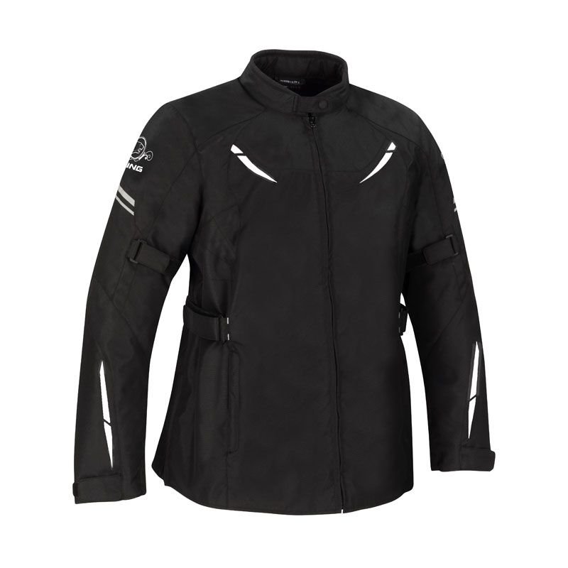 BERING vous propose sa veste textile LADY PENELOPE – QUEENSIZE :Matière :En Fibretech 600D extrêmement résistant à l’abrasionDoublure :Doublure fixe Mesh pour une circulation de l’air optimiséeMembrane étanche et respirante BW2TECH100+Doublure thermique, complète, amovible 120gProtections Protections coudes Protect Flex OMEGA Lady réglables homologuées CEProtections épaules Protect Flex OMEGA réglables homologuées CEPrédisposé à recevoir une protection dorsale OMEGA homologuée CE niveau 2 OU de niveau 1Les « + » :Fermeture du col par bouton pressionPatte de serrage Velcro aux poignetsZip d’aisance aux hanchesBoucles d’ajustement Velcro à la tailleSystème anti-battement sur les manchesInserts réfléchissants pour une visibilité accrueCoupe Grandes TaillesPoches :2 poches externes zippées2 poches internes