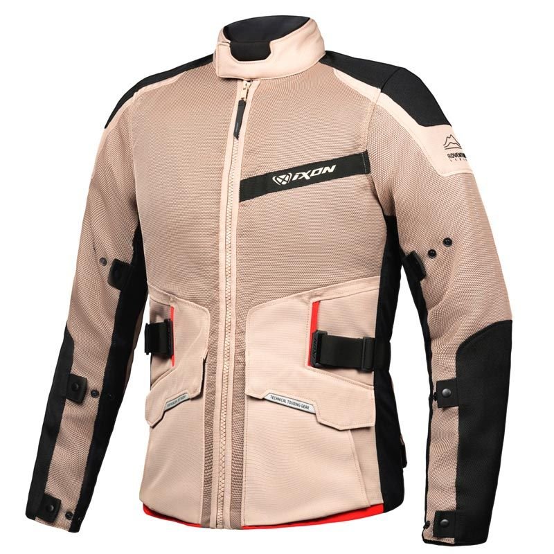 Veste Ixon M-NJORD: Présentation: Ixon vous présente sa veste adventure M-Njord, à la coupe fit : Matières: Matière extérieure en polyester Ripstop et mesh Stretch à l’intérieur des bras et sur les côtés pour un confort optimisé Col néoprène avec renfort cou Veste imperméable Thin Ripstop polyester XDRY3L utilisable indépendammentProtections: Modèle certifié CE, classe AA, conforme à la norme EN 17092-3:2020 Protections fanom coudes et épaules type A niveau 1 Poches pour protections poitrine fanom Poche pour protection dorsale, optionnelleLes « + »: Système réglable de fermeture du col Boutons pression sur sangle élastique aux biceps, avant-bras et poignets Taille réglable en hauteur Zip de raccordement Veste/PantalonPoches: Deux poches à rabat avant Deux poches latérales avec sangle de maintien pour le passager Deux poches dos dont une étanche avec fermeture zippée Deux poches intérieures Deux poches sur la veste de pluie
