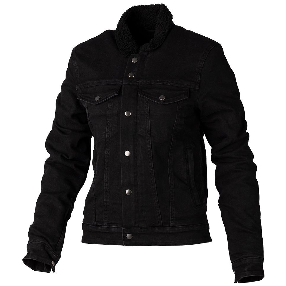 Veste Jean RST SHERPA X-KEVLAR: Présentation: RST vous propose son blouson moto en jean SHERPA X-KEVLAR : Matière: Fabriqué en Coton Denim Renforts en fibres DuPont? Kevlar® reconnu pour son extrême résistanceDoublure: Doublure intérieure en polaire SherpaProtections: Protections épaules homologuées CE niveau 1 Protections coudes homologuées CE niveau 1 Prédisposé à recevoir une protection dorsale disponible en option Les « + »: Col chemise en Sherpa Patte de serrage pression aux poignets Pattes d’ajustement pression à la taille Zip central avec rabat pressionPoches: 4 poches extérieures
