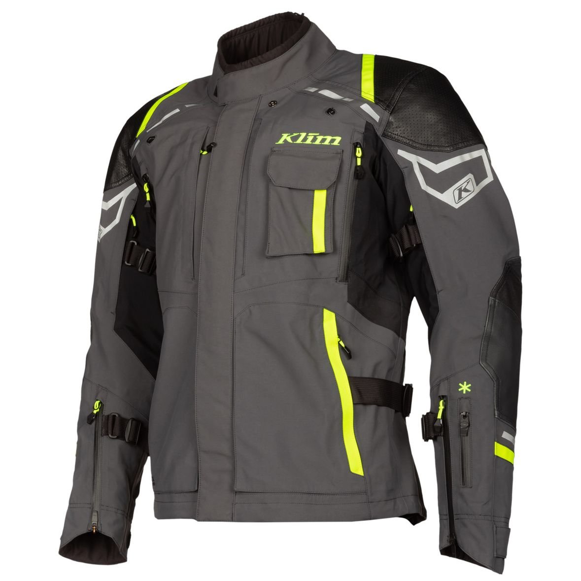 Veste KLIM KODIAK GORE-TEX PRO: Matière: En Nylon Cordura haut de gamme 840 deniers offrant une résistance optimale à l’abrasion et aux déchirementsEmpiècements en cuir de chèvre souples et perforés sur les épaules et les coudesPanneaux Stretch Gore-Tex sous les bras pour plus d’aisanceDoublure: En Gore-Tex Pro® laminé 3 couches 100% étanche et respiranteDoublure en maille respirante évacuant l’humiditéDoudoune incluse légère, élégante et pouvant se porter séparémentProtections: Protections épaules amovibles D3O® homologuées CE de niveau 2Protections coudes réglables et amovibles D3O® homologuées CE de niveau 2Livrée avec une protection dorsale D3O® homologuée CE de niveau 2Protection poitrine Meshée laissant place à de nombreuses ouvertures pour la ventilationVentilation: 2 évents en haut de la poitrine2 évents Biceps2 grands évent réglables aux poignets avec double fermeture à glissière2 extracteurs verticaux dans le dosLes « + »: Col tempête amovible, conçu en Schoeller® et protégeant des intempériesRabat au niveau du zip principal pour une protection contre le vent et l’eauManches préformées anatomiques avec serrage en métal sur les avant-bras et au niveau des biceps2 sangles de serrage au niveau de la taille1 carte d’identification d’urgence pour l’avant brasZips YKK® grosse maille pour une grande durabilité dans le tempsZip de raccordement veste et pantalonInserts réfléchissants 3M? SCOTCHLITE? de qualité supérieure pour une meilleure visibilité nocturnePoches: 2 poches extérieures poitrine2 poches extérieures mains1 poche satellite Tracker1 petite poche CB sur l’avant-bras2 poches intérieures poitrine1 poche cachée dans la doublure2 poches internes inférieuresNotre conseil :Cette veste moto Touring Adventure est garantie à vie.Afin de créer un ensemble haut de gamme qui s’avèrera le compagnon de voyage ultime pou vos trajets les plus épiques, qu’il pleuve, qu’il vente ou qu’il neige, nous vous conseillons le pantalon Touring Adventure GORETEX le KODIAK